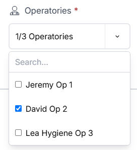 Operatories drop down shows a list of operatories.