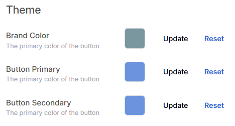 The theme section is for customizing the visual appearance of the form. You can adjust or reset the colors of the branding section and various button colors on the form. Customizing the style allows each practice to maintain its distinct identity.