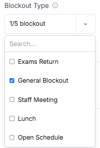 - If the open schedule option is enabled, we will also show slots that aren’t reserved for any other blockouts. (Choose this if you want a hybrid approach of block scheduling and general scheduling).