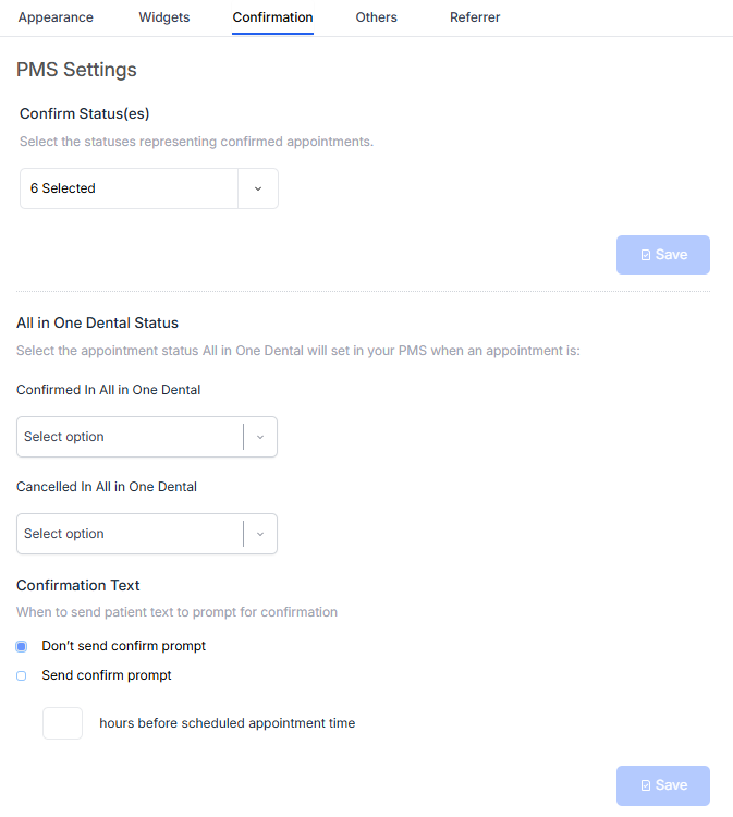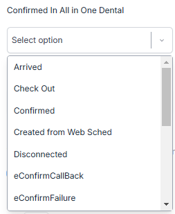 Confirm Status (es) : You can choose specific appointment statuses to be marked as confirmed, but only if the PMS appointment status is set to “scheduled.” This feature ensures that only appointments in the “scheduled” status can be confirmed, helping maintain accurate scheduling and preventing premature confirmation.