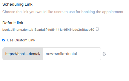 Use Custom Link : If the Custom Link feature is turned on, you can create a personalized link to access the patient form. This allows you to provide a branded and easy-to-remember URL for patients, enhancing the user experience and maintaining consistency with your practice’s online presence.