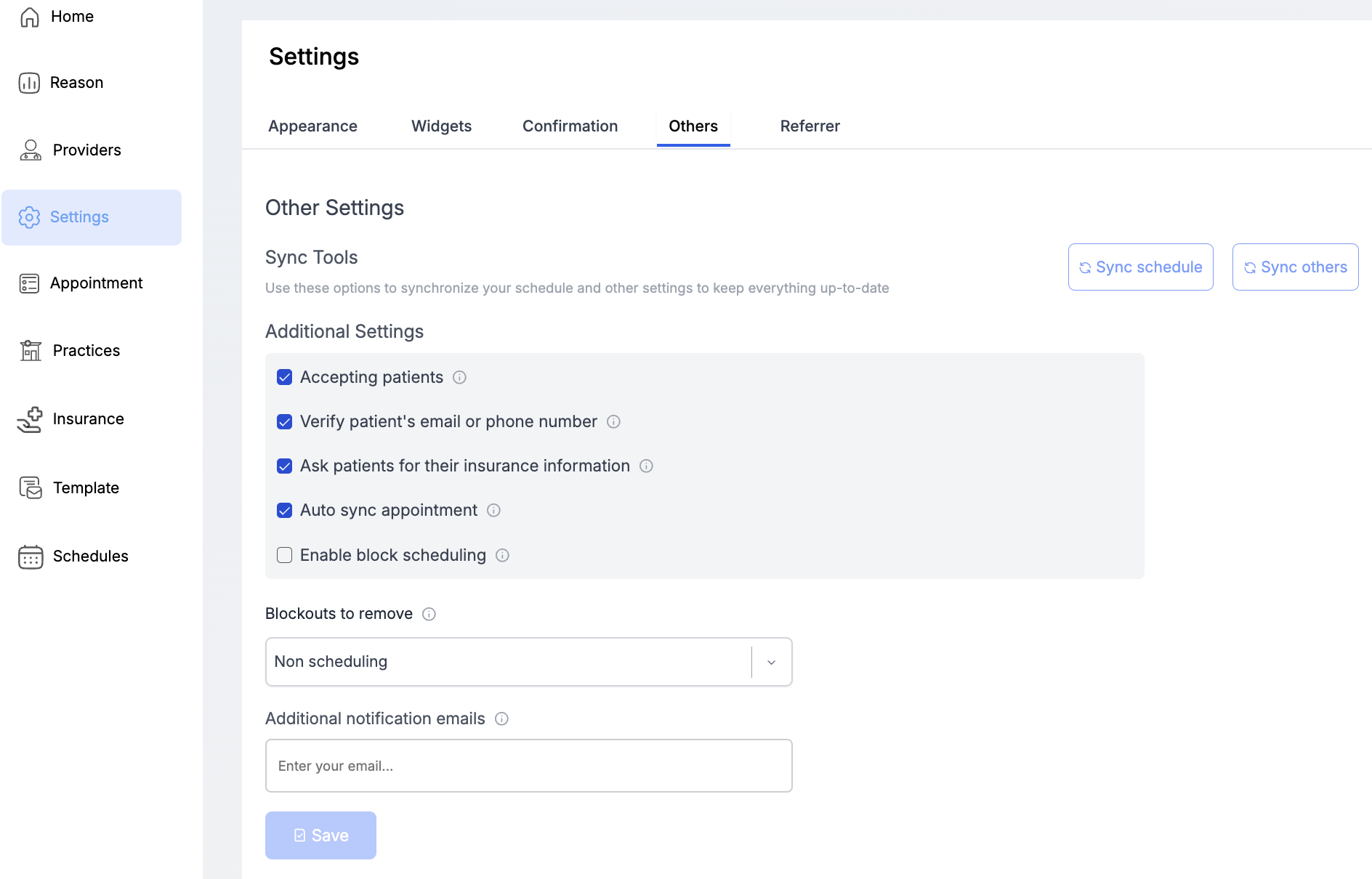 Enable Block scheduling : Block scheduling feature offers practices more granular control over when and where they want to take specific appointments.
